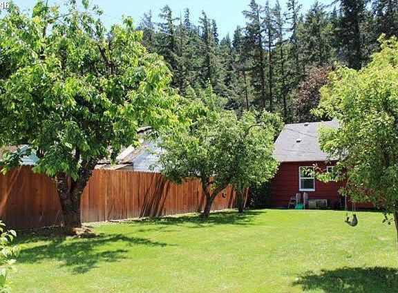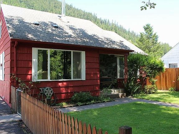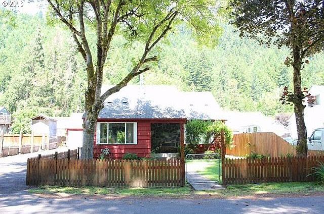 Great home in the Delightful town of Westfir, house is across from N. Fork Willamette river. Fully fenced front and back, landscaped, fruit trees, room for garden, 2 car detached garage, master on main level, lots of cabinets. Utility room is large enough that it is used for an office as well. Covered front and back porches, RV parking and more.