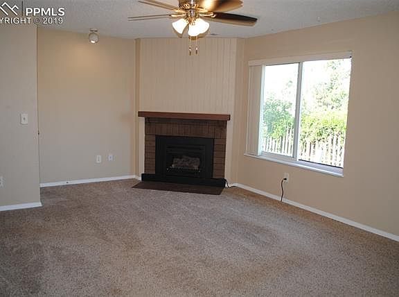 Remodel in process! New upper level doors and large bathroom with luxury vinyl plank flooring and mirrors to come soon! Check out this opportunity to own a 3 bedroom townhome with RARE 2 car attached garage. Many new features include- trim paint throughout and many new light fixtures and ceiling fan, new blinds in 2 bedrooms and sliding glass door. The exterior includes new roof, gutters, and paint. The main level's open layout has big, newer windows for lots of light and Pike's Peak views. The dining area has access to the patio and green space. The living room features a gas fireplace. All 3 bedrooms are located on the upper level, as well as the HUGE bathroom with double vanity, vaulted ceiling, and skylight. The laundry area is also upstairs for easy access. The air conditioning unit is not operable and will not be repaired. New pictures to come when the remodel is complete, but don't wait to see it!