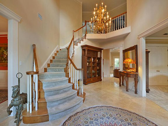 Beautiful Don Reynolds custom designed brick estate in the heart of Westlake. For those looking for a bit of tradition along with their Austin charm, this red-brick Federal-style house in the is the perfect fit. The home’s privately gated circle driveway and smooth lawns are reminiscent of the manors on the East coast, while the mature oak trees remind you you’re in Texas. Enter into the grand foyer graced with a sparkling chandelier and graceful sweeping staircase. The formal rooms are traditionally laid out with the living room and formal dining room flanking the entry hall. Both are finished with crown molding; the dining room also features paneled wainscoting. Beyond the formal areas, the family areas are laid out to maximize both efficiency and conversation. The large, sunken family room is warmed by a white-mantled fireplace; while just a step up is a convenient open bar area, perfect for making an after-dinner drink to enjoy in front of the fire. Detailed millwork and custom built-in bookcases refine the room. The spacious kitchen features a French-country style brick wall that frames the cooktop and houses the double oven. Light-wood cabinets reflect the sunlight coming in from the windows overlooking the backyard. A huge central island gives plenty of room to spread out while making a meal. On the main floor, the huge, carpeted master bedroom features a bay window looking out over the peaceful back yard. His and hers walk-in closets flank the entry to the elegant master bath; centered around the freestanding tub flanked by windows. Upstairs are three additional bedrooms, all with walk-in closets and attached baths. The large media room could easily be turned in to a fourth bedroom or an additional study. Also enjoy the outdoors sitting in the large pool, shaped for both splashing and laps. The chef can be cooking dinner at the outdoor grill while guests enjoy the brick veranda and pool. The lot itself is park-like, with almost 1.106 acres of smooth, level lawns, mature landscaping and arching oak trees. A traditional charmer, this home blends the best of East-coast sensibilities with Austin hospitality.