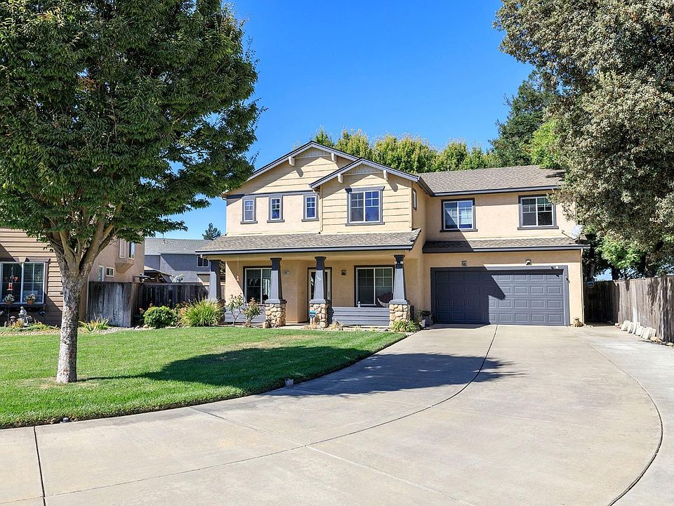 Immaculately maintained two story home located in the desirable Ferreira Ranch Rose Circle Estates in North Turlock. This home features 2,232 sqft, 2-car garage and 4 bedrooms. As you enter a beautiful staircase greets you with a rounded Juliet Balcony, which leads you to the spacious master suite that overlooks the large backyard and pool. The bathroom features walk-in closets, double sinks, soaking tub and separate shower. Prestigious design firm in Turlock, has renovated the master bath to create a luxurious spa like feel at home. In addition to the bedrooms there's a large bonus space,which has been used as an study/work/crafting, it has large built in desks. Downstairs your formal dining Room connects to the kitchen and family room with fireplace giving you that cozy winter vibe and great room feel. When entering from the garage you are greeted by a spacious workshop/work-out area, spacious laundry and mudroom, with a connecting desk to the kitchen. Stepping outside you are transported to your own personal oasis, with a beautiful Built in pool w/colorful lighting display ready for any event.New A/C & Furnace. Whole house fan,gutter guard warranty,water softner. Medeiros Elem. is a short walk. California State University, High school, Junior high and FREEWAY aprx 10min drive