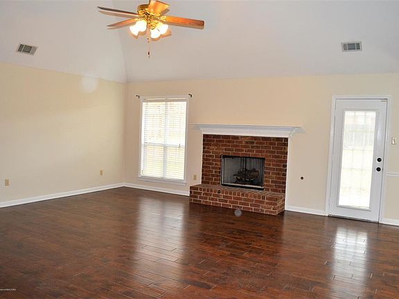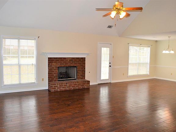 NEW Listing ~ Updated with Wood Floors throughout entire home (NO Carpet!) & NEW Paint ~ Great Family-Sized Cove Lot big enough for future pool with Beautiful Trees & full privacy fence ~ Front Porch welcomes you to High Ceilings, Open Living / Dining Area with Separate Breakfast / Morning Room ~ Kitchen with Granite, Stainless Appliances including Whirlpool Gold Fridge, Breakfast Bar, Pantry, & lots of cabinet and counter space ~ Sun Room just off the Kitchen/Morning Room offers great views ~ Master Suite with High Ceilings, Dual Vanity, Full Length Mirror, Jetted Garden Tub and a pass-thru Walk-In closet with tons of shelving/cubbies ~ Bedrooms are spacious and include Ceiling Fans ~ Additional Features: Security System, Blinds, Laundry Room with Built-In Cabinet, Fire pit, Shed