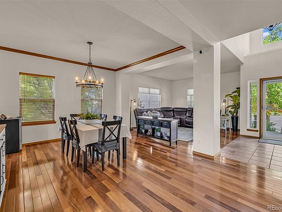 Welcome to The Meadows in Castle Rock, where Colorado lifestyle, community, and open space come together. Tucked at the end of a quiet cul-de-sac and embraced by a neighborhood park and greenbelt, this home welcomes you with abundant natural light and gorgeous rich hardwood floors. The main level offers a flexible layout with a separate living and dining room, a large kitchen with granite countertops and stainless-steel appliances, and an open concept family room with soaring vaulted ceiling including a convenient main floor office. Step outside to a beautiful wrap-around deck off the kitchen for private morning coffee or sunset gatherings. Upstairs you’ll find four bedrooms and a loft; the spacious primary retreat features a private 5-piece bath and walk-in closet, with an additional full bath serving the secondary bedrooms. The finished walkout basement is an entertainer’s dream, complete with a bar/kitchen area, theater room, furniture and projector included. Two additional bedrooms, a full bath, and a relaxing dry sauna. Outside, the expansive backyard backs up to open space and nature, and showcases a built-in grill, firepit, and mature trees for privacy. Minutes to I-25, the Castle Rock Outlets, amazing schools, trails, dining, and community amenities. This is Colorado living at its finest. Don’t miss this incredible opportunity in The Meadows!