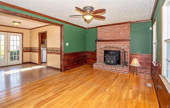 Custom built all brick home nestled on a private 4 acre lot!! This home features an inviting Foyer with wood floors off of that, there is a Family Room with a brick fireplace with a wood stove and wood floors, large Kitchen with lots of cabinet space and solid surface counter tops!! There is a formal Dining Room right off the Kitchen and also an Office/ Living Room on the first floor! The Utility Room is right off the side entrance and across from the 1/2 bath! The entire home has real site finished oak hardwood floors except for the Bathrooms, Kitchen and Utility Room. 2 Detached garages with plenty of space for cars or workshop and one of the garages has a separate meter for power! There is a great entertaining area in the rear of the home with a patio and privacy fence!
