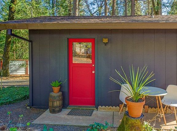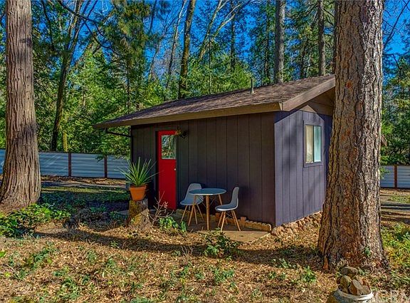 Retreat among the pines to this private, fully fenced forest sanctuary! This darling tiny home is 837 square feet, and rests on 1.21 acres of leveled land situated in lower Forest Ranch, in walking distance to the post office, restaurant, and store! Less than a 20 minute drive to Chico while still getting the opportunity of country living! Completely deer proof and safe for your dogs to roam freely, this property is entirely enclosed with brand new, gorgeous corrugated metal fencing. The main house features 1 bedroom and 1 bath, with a study that rests beautifully off the updated kitchen. Indoor laundry room with tankless hot water heater for on demand hot water, wood burning stove, and gas furnace are just a few of the many features this home has to offer. Upstairs, the high ceiling loft can be used as a library, second bedroom, or TV room. Tastefully painted inside and out, you will love the light and bright interior and the crisp and cool exterior. The detached studio is 192 square feet, with a full bath for housing additional guests. Storage is available in the detached bonus room or beneath the carport. This home includes the refrigerator, washer, and dryer. You can live in the main house, rent the studio, or have the entire property to yourself! Bring your pets and live stock! The land is sunny, flat, and entirely enclosed. This gem is a gardener's dream. Don't let this delightful property pass you by!