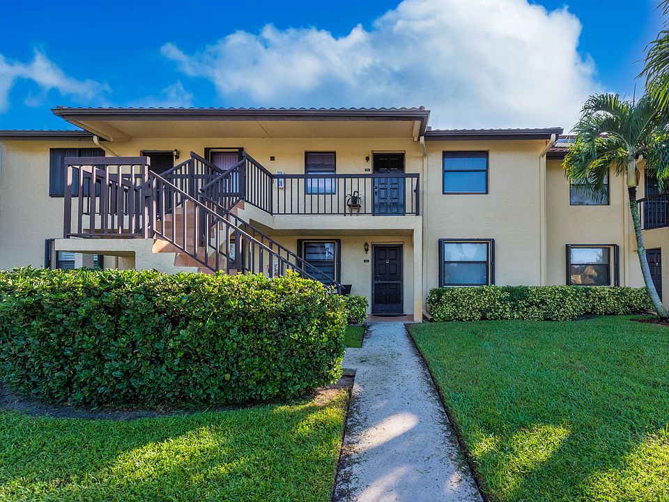 AMAZING SECOND FLOOR UNIT WITH VIEW OF THE WATER AND GOLF! VAULTED CEILING, STAINLESS STEEL APPLIANCES. PARTIALLY RENOVATED BATHROOM, TILE FLOORS THROUGHOUT. NEUTRAL COLOR PAINTED. FULL SIZE WASHER AND DRYER IN THE UNIT. THE A/C HANDLER WAS REPLACED IN 2022. SCREENED BALCONY OVERLOOKS THE GOLF COURSE. THE COMMUNITY OFFERS A LARGE SCREENED POOL, A JACUZZI AND CLUBHOUSE. LOCATED IN A COMMUNITY WITH VERY AFFORDABLE HOA FEES. EASY ACCESS TO THE TURNPIKE. DON'T MISS OUT ON THIS ONE, IT WON'T LAST!! ALL AGES WELCOME!!!