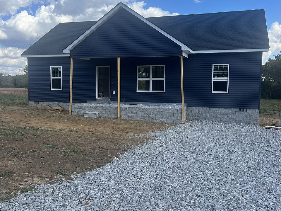 New Construction home features three bedrooms and two bath with open floor plan in kitchen and living room. Interior paint is French Gray. House will have custom cabinets with LVP flooring through out. Interior doors are farmhouse style white. Exterior of home is midnight blue vinyl with a front porch and back deck for outdoor enjoyment. This residence has county tax only. Home is built with 2x6 walls therefore more insulation for energy efficiency. Roofing material is Atlas Pristine Premium Architectural Shingles w/ 3 mm scotch guard that resists streaks and stains.Seller will pay up to $5000 in seller paid closing cost. Priced to sell in a great location. This home will have a 12x12 deck on back. Also laundry room has a pantry closet and an extra closet to be utilized for buyers household needs. Amazing floor plan .