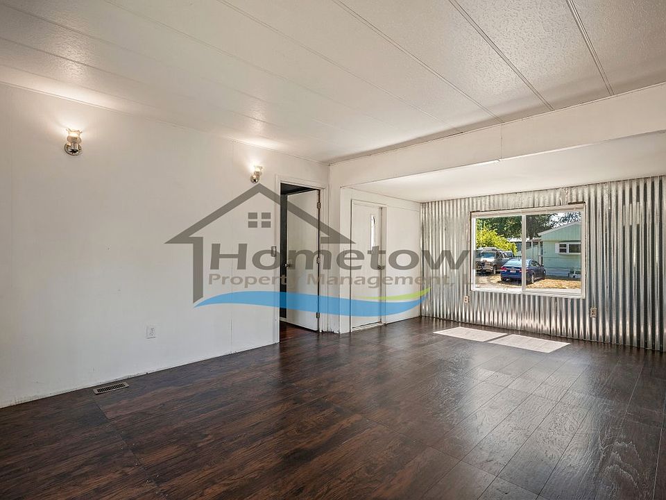 2 Bedroom 1 Bath Home Available in Sagle's Travel America Park! This home is located in the Travel America Park near the town of Sagle, six miles south of Sandpoint. The home is surrounded by pine trees and a grassy yard. There is enough room for two cars to park off-street in front of the home. The front door is located under a covered front porch, which is large enough for a small set of patio furniture. The front entrance takes you into a unique living, dining, and kitchen combination. Large picture windows on both sides of the home naturally light up this whole room. The kitchen features an electric stove, a built-in overhead microwave, a large refrigerator, and a pantry. The largest bedroom is located at the end of the hallway and features a large closet. The large bathroom features extra cupboards and a large shower stall. The guest bedroom on this side of the home features a makeshift closet installed by the home's owner. There is a laundry nook in the hallway with washer and dryer hookups and a doorway to the back of the home. There is another guest bedroom at the front end of the home. This bedroom also features a large closet and a bay window looking out onto the front yard. Laminate flooring has been installed throughout the whole home. The front yard has raised flower beds which tenants are welcome to use for planting a small garden. A very large lockable shed is also available on the lot. Water, sewer, garbage, and park space rent are all included in your lease. No smoking. Application Fee: $40.00 Security Deposit: $1,350.00 Pet Deposit: $400.00/pet Monthly Pet Rent: $35.00/pet One small dog is considered on a case-by-case basis with owner approval. Water, sewer, garbage, and park space rent are all included in your lease. No smoking.