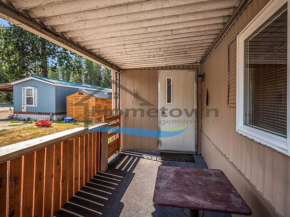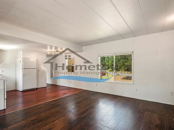 This home is located in the Travel America Park near the town of Sagle, six miles south of Sandpoint. The home is surrounded by pine trees and a grassy yard. There is enough room for two cars to park off-street in front of the home. The front door is located under a covered front porch, which is large enough for a small set of patio furniture. The front entrance takes you into a unique living, dining, and kitchen combination. Large picture windows on both sides of the home naturally light up this whole room. The kitchen features an electric stove, a built-in overhead microwave, a large refrigerator, and a pantry. The largest bedroom is located at the end of the hallway and features a large closet. The large bathroom features extra cupboards and a large shower stall. The guest bedroom on this side of the home features a makeshift closet installed by the home's owner. There is a laundry nook in the hallway with washer and dryer hookups and a doorway to the back of the home. There is another guest bedroom at the front end of the home. This bedroom also features a large closet and a bay window looking out onto the front yard. Laminate flooring has been installed throughout the whole home. The front yard has raised flower beds which tenants are welcome to use for planting a small garden. A very large lockable shed is also available on the lot. Water, sewer, garbage, and park space rent are all included in your lease. No smoking. Application Fee: $40.00 Security Deposit: $1,350.00 Pet Deposit: $400.00/pet Monthly Pet Rent: $35.00/pet One small dog is considered on a case-by-case basis with owner approval. *Property information is deemed reliable but is not guaranteed.*