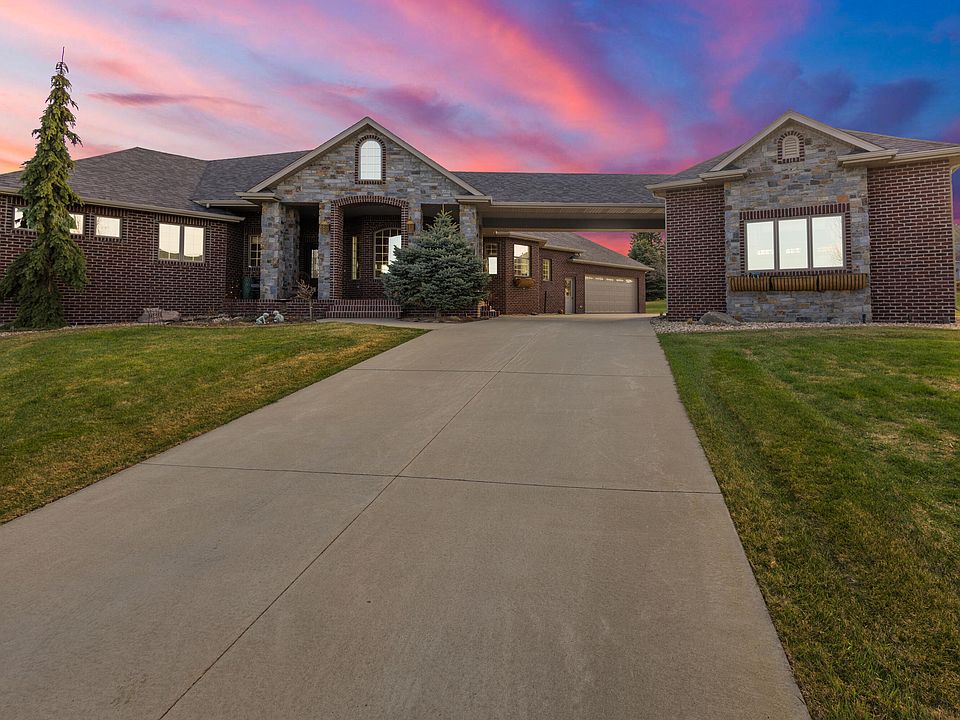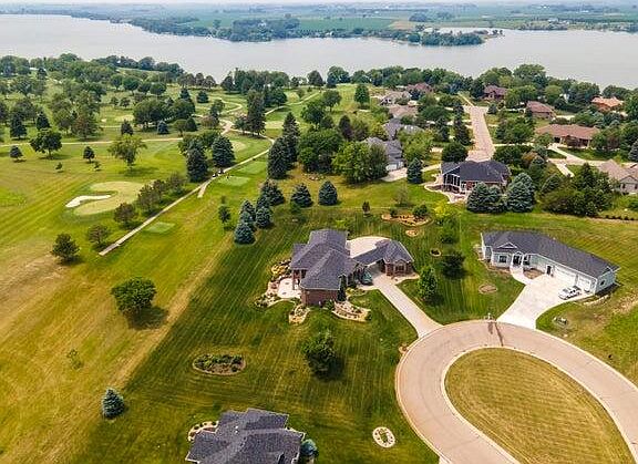 HIDDEN GEM located at the top of the hill in a quiet cul-de-sac on Hole #4 of the Brookings Country Club! This one owner custom-built home spans over an acre of landscaped grounds offering stunning golf course views and an unbeatable commuter location! Easy I-29 access for work or travel, 45 minutes to Sioux Falls, 15 minutes to Brookings, and 5 minutes to the first tee (yes, really!!). You'll enjoy luxury living with easy access to city conveniences! This stunning brick and stone exterior home spans an approx. 4250 finished SqFt with 4 bedrooms and 4 bathrooms. Upon walking through the front door, you will instantly notice the exquisite craftsmanship from the high-end hickory hardwood flooring to the elaborate custom millwork and architectural columns. The main floor boasts 2365 SqFt and a dream kitchen with custom built cabinets that include upper lighting, granite countertops, a huge island, and a baker's pantry! You will not be disappointed with all the countertop space! French doors lead you to a composite deck right off the kitchen perfect for evening dinners or morning coffee with views to the golf course! The deck is suited for a TV with TV hookups available and the capability of being screened in. The formal dining room will instantly draw your eye to the tray ceiling with elegant tin detailing. You'll enjoy the primary suite with views that look out to the golf course and bathroom featuring in floor heat a tile walk in shower, jetted soak tub, a double vanity sink with marble countertops and a large walk-in closet. This home is entertainment ready with a freshly painted basement fit for any gathering. The unique layout offers space for a game table while still providing ample space for a living room! You will be amazed at the wet bar equipped with a fridge, dishwasher, microwave, sink, and granite countertops that leads to the concrete patio making hosting easy! The attached 2-stall garage has epoxy flooring and in floor heat with floor drains making it convenient all year long! You will find plenty of room to store your toys in the detached garage with an overhead door and concrete flooring. This home has 6 wells located on the property. 5 of the wells are for the state-of-the-art geothermal system providing eco-friendly climate control and zoned in floor heat throughout the basement. The additional well is provided specifically and only for the irrigation system making sure your lawn is green all summer long! This home is truly a see for yourself! Call today to schedule a showing!