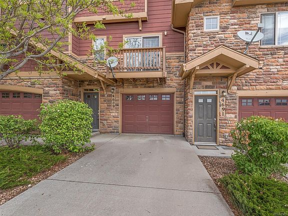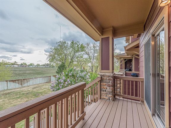 Updated townhome with all new kitchen appliances, new carpet in living room, new interior paint throughout and new shower door enclosure in second bathroom. 2nd bedroom boasts its own bathroom. Spacious Master Bedroom has vaulted ceiling and his & hers closets. Master Bathroom has large garden soaking tub. Beautiful granite counters in kitchen and bathrooms. 40" maple cabinets and large dining nook in kitchen. Convenient upper floor laundry room with washer and dryer included. Balcony off the kitchen facing south and covered deck off living room facing north will provide great cooling effect without using a/c on hot summer days. 2 car tandem garage with separate utility and storage spaces. Enjoy the community pool in the summer months and play volleyball with your friends on the sand volleyball court. There are also two great playground areas. Explore the nearby Colorado Front Range Trail!