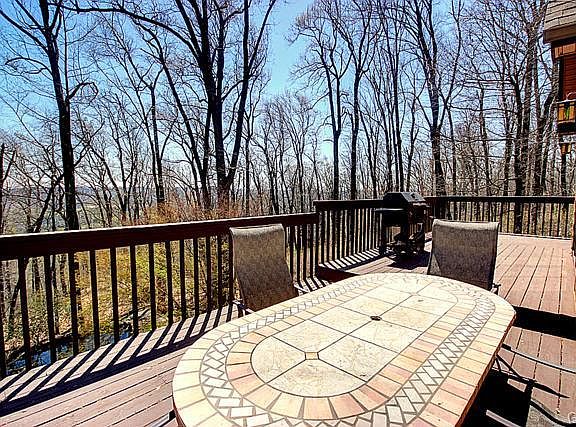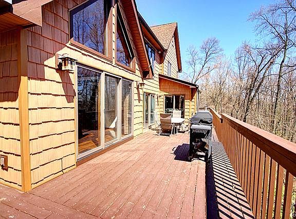 WOODED PRIVACY! If you're looking for a real retreat yet convenient to all, look no further. This custom contemporary home at the end of a cul-de-sac, has breathtaking views of Center Valley and is situated on a private 5+ acre wooded lot. Huge 70+ft wrap around deck provides a perfect area to enjoy your surroundings, which includes a man made stream and pond. Gourmet kitchen features a professional series Viking Range. Adjacent to the main kitchen, is a secondary Kitchen prep area and pantry. First floor is completed by a formal Dining room, private Study with built-in bookshelves, and large Family Room with cathedral wood ceilings and fireplace. The walk-out lower level is completely finished, to include an additional Bedroom and Full Bathroom. Geo-thermal system. If you're looking for a vacation home as your primary residence - this is the one!