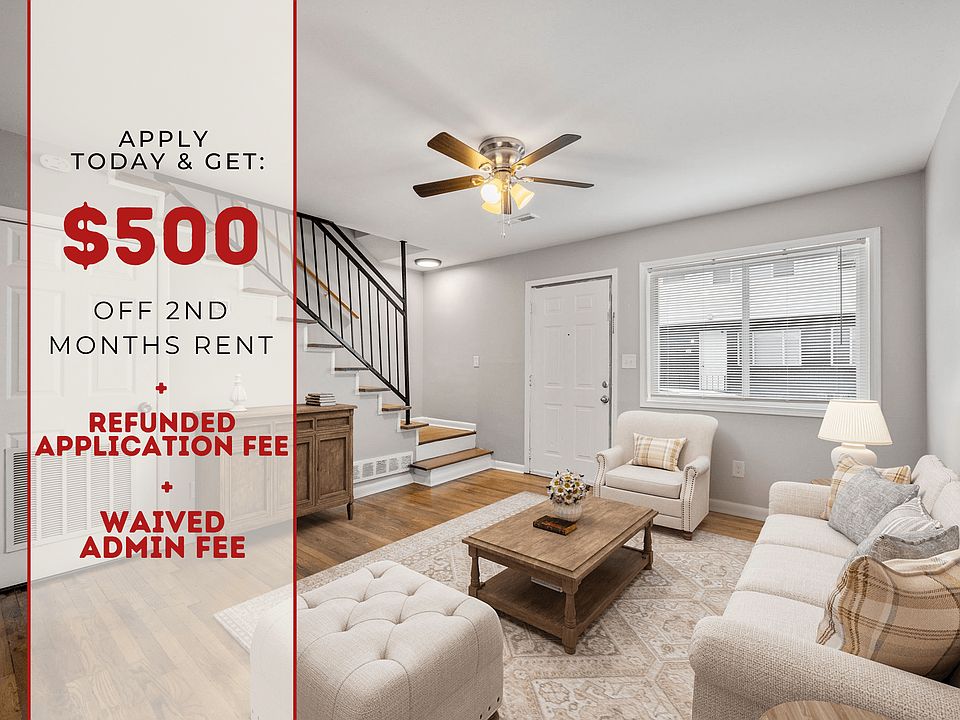 - Special offer! Receive $500 off second months rent + refundable application fee + waived admin fee!