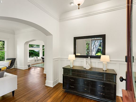 PRICE IMPROVED In the highly desirable First Addition neighborhood, this impeccably remodeled 1920s home masterfully combines historic charm with modern convenience. With its prime location and extensive upgrades, this residence is the ideal choice for discerning buyers.From the moment you approach, the elegant facade with intricate woodwork and a welcoming front porch signal that this home is truly special. Inside, you'll find a renovated interior where original features seamlessly blend with contemporary finishes and furnishings. The foyer greets you with beautiful original hardwood floors and crown molding, which continue throughout the main floor, setting the tone for the timeless elegance found throughout the home. New interior paint.Designed to accommodate various lifestyles, this home offers versatility and sophistication. The remodeled kitchen beautifully blends vintage details with modern amenities, featuring new stainless-steel appliances, period-appropriate cabinetry, and a charming farmhouse sink. Living spaces are thoughtfully arranged to maximize natural light, creating an open and inviting atmosphere.Perfect for multi-generational living, the house boasts a spacious primary suite with a sitting room and office or nursery, along with two additional bedrooms on the main floor. The lower level features a versatile basement equipped with a workshop/office/stucy, kitchenette, and half bath. An additional studio ADU complements the original architecture while providing the comforts of modern living.Outside, the private backyard, designed by renowned landscaper Lucy Hardiman, offers a serene retreat for relaxation or entertaining guests. In the front, a porch swing fosters neighborly interactions, adding to the vibrant sense of community.Conveniently located to DT LO, near parks, shopping, and Lake Oswego Schools, this property perfectly combines luxury, comfort, and convenience. Don?t miss the opportunity to make this exceptional home your own.