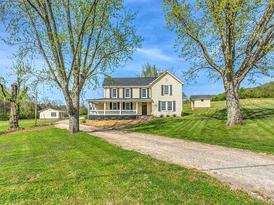 Pre Civil war farmhouse on 42 acres has been lovingly restored while preserving the beautiful original state. Original 5'' heart pine flooring, 12'' base boards, full lead crystal chandeliers that were original to the home. Kitchen features shiplap ceilings, leathered granite counter tops with floating island w/a custom hemlock reclaimed lumber top. Formal Dining Room with fireplace and hardwoods. Stainless appliances and farmhouse sink. Main level En suite master w/ champagne bronze fixtures,tiled walk in shower and fireplace . Beautiful original staircase in front with a second stair case leading to a huge den with hardwoods and builtins. Huge brick hearth with cast iron stove. 5 Br's on the upper level, as well as a bonus room. large windows, and hardwoods in hallways.