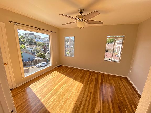 2 bed 1 bath, apx 1,000 sq ft. Beautifully remodeled kitchen and bathroom. Kitchen with stainless steel appliances, breakfast nook, and great views. Refinished hardwood floors, newer interior paint, newer exterior stucco. Picture windows with great views. Large bedrooms and living room. Great location, close to Lake Merritt, shopping, and freeway. Single car garage space and 1 additional parking space behind garage spot. Washer, dryer, and refrigerator included.
