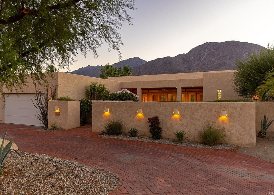 Exciting architectural desert retreat in a timeless contemporary style. Thoughtfully designed with 10 foot ceilings and walls of glass to maximize mountain and golf course views. Desirable floor plan, with a great room, private master suite, spa like bath, walk in closet and office space. Enjoy indoor- outdoor entertaining in the fire warmed living room, open kitchen-dining room, private courtyard or covered terrace with golf and mountain views. Additionally, there is a second bedroom and bath with private patio. The interior exudes style, warmth and comfort amidst beautifully scaled rooms with well appointed features including high ceilings, custom lighting, niches and tile floors. Located in DeAnza Golf Estates, in an unrivaled location just a short walk or golf cart ride to the DeAnza Golf Club. Nicely elevated lot with mature landscaping, drought resistant plants and citrus trees. Additional features include a two car attached garage, inside laundry room, above ground spa and motorized rolling security shutters. 2022-10-20