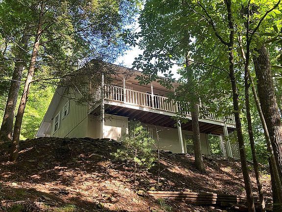 Charming 2 bedroom, 2 bath home in the Owltown area with INCOME POTENTIAL! Open kitchen and living area with a stone gas log fireplace. This home has been freshly renovated and the appliances are included. Brand NEW HVAC on the main level. Front and back decks overlook mature landscaping and a man-made POND! Adorable nook off the main living area could be used as a library, sitting room, or small bedroom. Basement could be rented with 1 bedroom, kitchen, bath, living area and separate entrance!! Circle drive and accessible parking for 2 or more cars. Don't miss this nice home for easy living in the mountains.