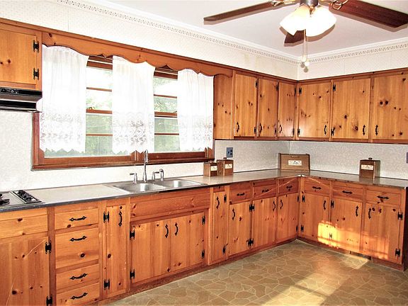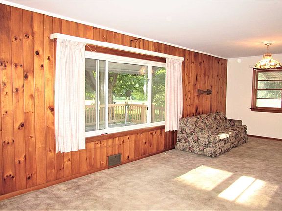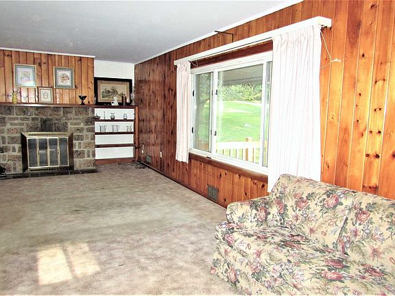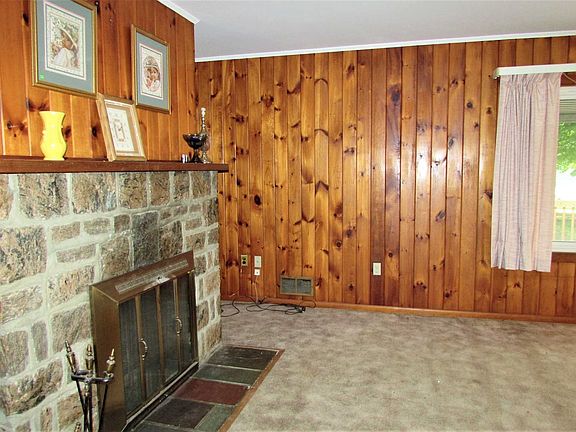 Hard to find Stone House sits on one full acre of parklike property! Oversized living room offers a stone fireplace, solid oak hardwood floor and a huge picture window. Open dining room area has hardwood as well. Large kitchen features solid pine cabinets, pantry cabinet, great counter space and plenty of room for a kitchen table. Two nice-sized bedrooms with hardwood and a spacious hall bath. Pretty property with perennial flowering trees and bushes, stone walls, large deck and shed.