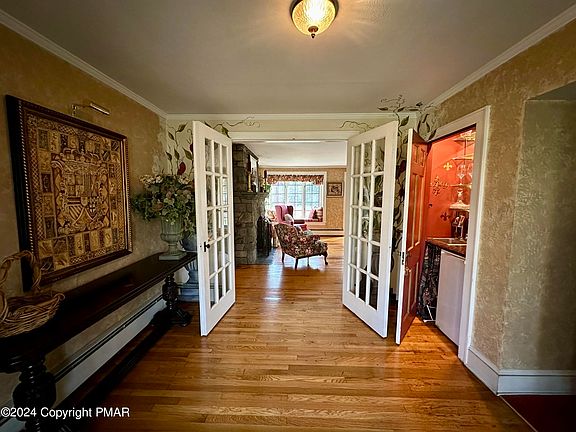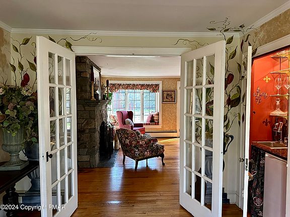 Step into this enchanting abode exuding an elegant old-world allure! A feast for the eyes, this property is a true gem with its exquisite decor that demands attention. Boasting 6 bedrooms and 4 bathrooms, this updated residence offers ample space for luxurious living. From the magnificent entrance hall leading to the inviting living room and the charming flagstone patio, there are plenty of nooks to curl up with a good book and a cup of tea or host gatherings with loved ones. Whether you fancy unwinding by the stone fireplace or indulging in the marvelous kitchen/dining area adorned with granite countertops, built-in shelves, and abundant storage, each area is a pure delight. Additionally, there's a spacious laundry/mudroom and a convenient second staircase enhancing the practicality of the home. Upstairs, a game/family room is surrounded by additional bedrooms, a bathroom, and an office. The sheer size and magnificence of this property are sure to leave you in awe! Impressive updates include a newer roof and windows, remodeled bathrooms and kitchen, a fenced yard, a 2-car garage, and a full basement, all nestled in the heart of the Poconos. Home is amazing for a family or investors. Imagine waking up to the serene countryside ambiance while relishing in the modern amenities and conveniences you desire. It's like having the perfect blend of peace and ease right within reach!