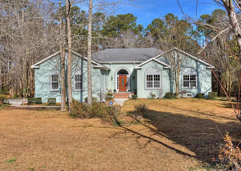 Lovely 4 bed/2 bath stucco home on 2.61 Ac in the desirable Grovetown area. The home features a formal living room and dining room, 12 ft ceilings, crown molding, tray ceilings in some rooms, hardwood floors, and new paint throughout. The master bath, completed in 2020, includes double vanities, open shower, and raised garden tub. The other bath and half bath have a Bluetooth speaker installed in the ceiling for listing to music. Kitchen includes new granite countertops with refinished cabinets, new door pools, hinges, and a new Frigidaire gas stove. Relax on the rear deck overlooking a wooded area or on the front porch gazing at Arabian horses. This property consists of a 24x24 outbuilding with working half bath, heating and air. Old appliances from the kitchen can be installed to complete this for a mother-in-law suite or other use. **Additional features/incentives are in the documents section.
