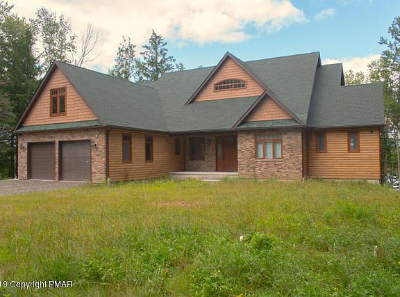 Welcome to this stunningly beautiful, luxury LAKE FRONT home! Where no expense was spared - from the imported Alder wood front door with stained glass, triple pane European style windows imported from France, Ash wood kitchen cabinets, unique granite countertops with imported Spanish backsplash to the painstakingly constructed French mosaic Oak floor that runs throughout the majority of the home. This grand home would be great for a large family, or create TWO in-law suites for the extended family with the possibility of 6+ BR and 4 BA, this home would also make a great investment property as the location of the home is close to all the major Pocono attractions!