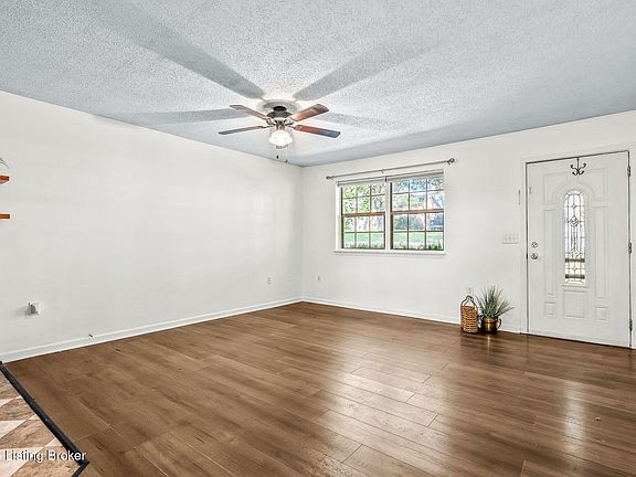 Nice ranch home with a view! This Henry County home has 3 bedrooms, 2 full baths all on one level. The yard feels nice and private, backing up to a small lake. You will enjoy sitting outside surrounded by mature trees, taking in the view of the sunset over the lake. The home has some fresh paint, an updated kitchen and hall bathroom, ample outdoor deck space & new flooring in the primary bedroom. The location is convenient to I-71 access if you are commuting into Louisville.