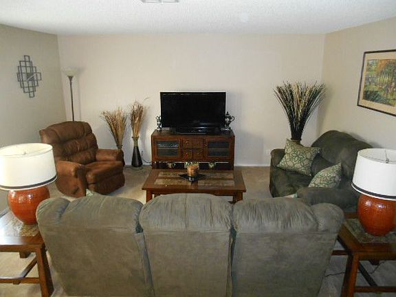 TILE in both baths, kitchen, traffic areas, breakfast area, and patio. NEWER kitchen counter tops. APPLIANCES - large refrigerator, range/oven, dishwasher, microwave, washer/dryer all included. TWO TONE paint with new electric plates, bath fixtures, breakfast table light, two inch horizontal blinds, sun screens rear windows, patio sun shade, new locks and door hardware. The attention to upgraded details is exceptional. Move in ready!