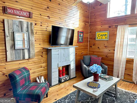 MOTIVATED SELLER WILL ASSIST WITH CLOSING COSTS! This immaculate 2BR, 2BA cabin offers a cozy and welcoming atmosphere and has 936 sq ft of space on 1.07 acres. Perfect property for Short-Term Rental (STRs are permitted) or full-time residence. The open concept ranch-style layout is designed with comfort and simplicity in mind, with all living space conveniently located on one floor: including the comfortable living area, the master suite, a second bedroom and bath, a living room, and a kitchen with stainless appliances. Next to the dining area is the rear entrance, leading to a back porch and private deck with a soothing hot tub surrounded by woods and a mountain view in the distance. Just below is the private backyard and a fire pit. The enclosed front porch has plenty of room for seating, with an EV charging port conveniently nearby. Above the living room is an attic entrance that provides a large area of storage space. Property comes partially furnished. Only 10 minutes from Blue Ridge and Mercier Orchards, and the whitewater rafting in TN and NC are only a 15-20 minute drive. You can also be at the Toccoa River in 10 minutes and drop in your kayak or fishing pole. Fannin County also has over 300 miles of hiking trails!