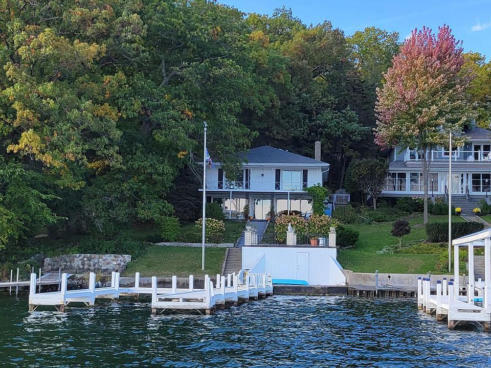 Entry level pricing on Geneva Lake doesn't typically come with a deeply wooded, .70 acre lot, 3 car det garage, large motor court, fenced yard, and 52' of easy sloped swim frontage. Yet this 3BR. 3BA walkout ranch has all that and a lot more (family rm partition has served as 4th BR). Enjoy your own private pier (Pier 357) w boat house patio and spectaular southern lakeviews. Lakeside of home is nearly all glass for expansive water views and sundrenched living from the primary suite, 2nd guest BR, and entire lwr lvl living areas. Hidden between George Williams and Norman Barr Camp you're in Williams Bay w city services and high speed internet. 2010 updates included new kitchen (cabinets, tops, Kitchenaid appl's), primary ensuite, wood flrs, and roof. New furnace 2017 and FP liner 2022