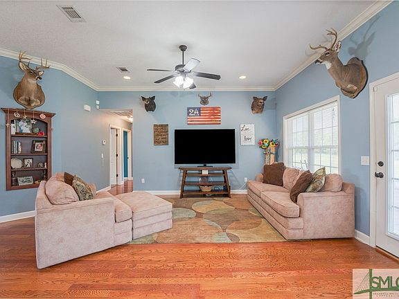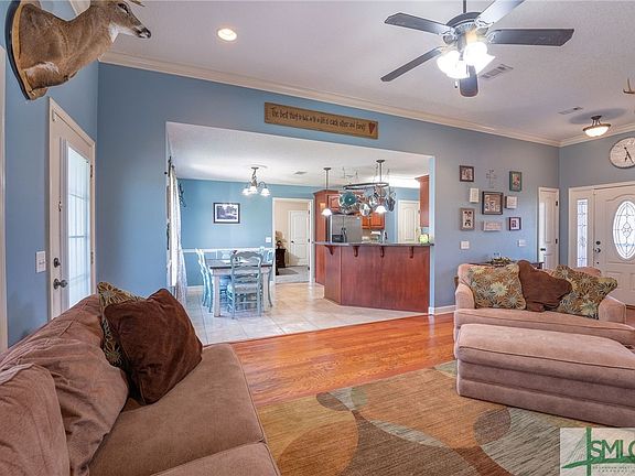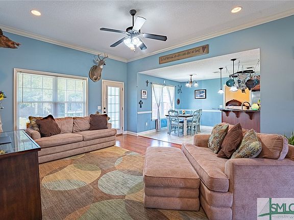 Welcome home! This adorable four bedroom, two bath, brick home is located in the established community of Parrish Crossings. Situated on a large full acre lot for privacy and space from neighbors. Enjoy the secluded back yard on a screened in patio or take a quick walk down to the pond for fishing. Located just minutes from both Ft Stewart, Hinesville, and Ludowici work computes will be a breeze. Interior features are sure to please, tall ceilings as soon as you open the front door, with new carpeting in the bedrooms, and beautiful paint its ready to be made yours. Tax ID is Ludowici, mailbox is in Hinesville so has Hinesville mailing address. GPS may pull both Ludowici or Hinesville pending which map system used. Ludowici means lower taxes!