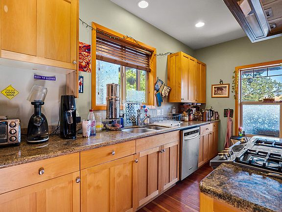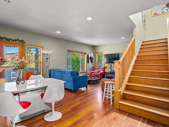 This beautiful tri-level Ashland home offers a spacious 2395 sq. ft. of living space, with 3 large bedrooms, 2 full bathrooms, and one large primary suite with en suite. The lower level has an additional 525 sqft studio apartment that is currently being used as a fourth bedroom but could be used for anything you like and features a private entrance off of Hersey St. The primary bedroom in the house is gorgeous and features a tiled walk-in shower, jetted tub and private patio access. The Studio apartment on the lower level has its own bathroom with a wet bar area and room for a fridge and stackable washer/dryer so it can be used as a guest quarter or office space. The property also includes wood floors, stainless appliances, granite counters, a gas fireplace, and great views of the valley. Next door to North Mountain Park and just over a Mile to Downton and SOU Campus. **Americas Preferred Home Warranty - 1 Year**