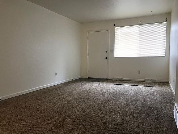Quaint ranch style duplex. Newer carpet and interior paint. Large living room, kitchen with all major appliances and cute eating area. Washer/dryer hookups. Good size bedrooms with large closets, full- remodeled bathroom for them to share. Very private backyard with covered patio and mature landscaping. Huge front yard, one car attached garage.
