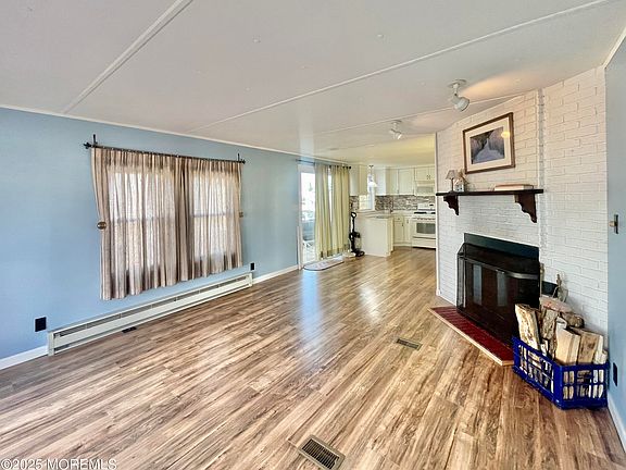 Step into a world of coastal charm with this exquisite mobile home nestled in the coveted Tuckerton Beach enclave. This delightful residence features two generously sized bedrooms and a meticulously designed bathroom, all harmoniously linked by an enchanting kitchen and living room, inviting fireplace—a perfect spot for cozy evenings.
