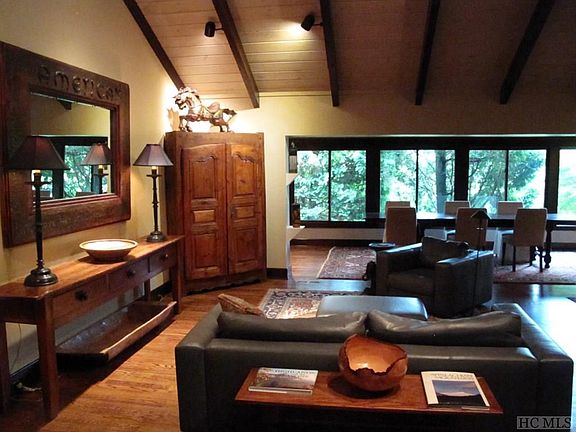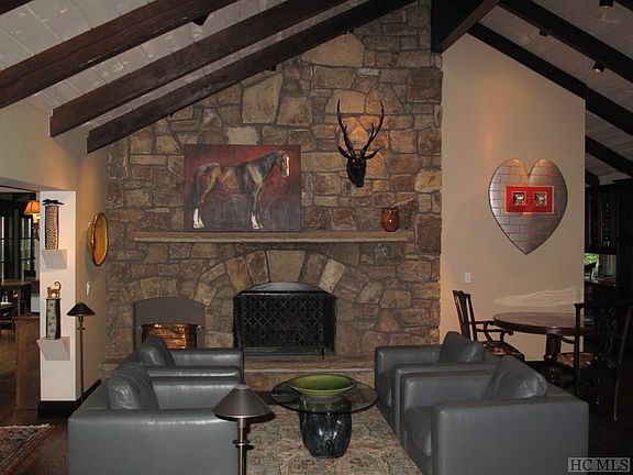 Location, Location, Location! This updated home is located on the 1st fairway of the Highlands Falls Golf Course. It has a beautiful view of a lake and the home's landscaping provides a mountain garden ambiance. This large single level home has a great floor plan. As you step in the front door you encounter a spacious great room with vaulted ceilings and a large stone fireplace with gas logs. Beyond the great room, is the formal dining room which can seat at least 12. Moving into the family room, which also has vaulted ceilings and another large stone fireplace (wood burning) that includes a very convenient gas starter, take notice of the floor to ceiling glass doors that allow you to take full advantage of the fantastic view. This view is shared from the large master bedroom which has floor to ceiling windows. This home is within walking distance of the Highlands Falls Clubhouse with all of its many amenities but for those who prefer to ride, the home offers your own personal golf cart. Downtown Highlands is a short 10 minute drive to local shops and fine dining. This home is the perfect choice for someone who loves to entertain family and friends. Schedule your showing now to see the numerous unique qualities of this home for yourself.