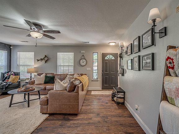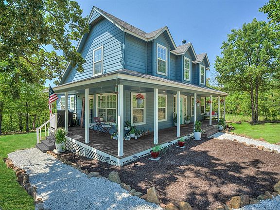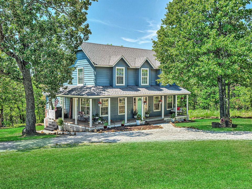 Country Cutie at its Finest! Come see this trendy, updated home that offers 4 bedrooms, 2 1/2 baths, a wraparound covered porch and 5 acres with a creek. Newly remodeled kitchen includes brand new counter tops, backsplash, and Kitchen-aid stainless steel appliances. All bathrooms have been updated with new vanities, sinks, toilets, & chic lighting. An upstairs bedroom has so much workspace, it could be the perfect office or craft room. 10x16 shed allows for plenty of storage. Bring your marshmallows because evenings by the fire pit are going to become the new norm in this quiet country setting. Home warranty through January 19, 2023 included.