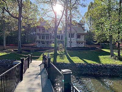 New build in 2021. 5 bedrooms. Craft room. 2 office spaces. Basement workshop. Basement framed for future finishing. Bonus room upstairs. 3 covered porches with lake view. One open patio with lake view. Covered front porch. All PVC deck and dock b2 fireplaces. Gas stove. 3 car garage. Basement finished 1400 sq ft; unfinished 1602 sq ft