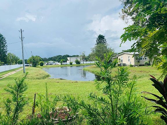 Water view without Water view price tag...Priced to SELL Quickly! Have your morning coffee admiring the Water view right in front of your lanai or enjoy watching the wildlife, from the beautiful paved patio adjacent from the lanai. Two bedroom two bath home has beautifully New laminate flooring through out the home. Bathrooms have had a facelift with new vanities in both master and guest bath. Newly painted with tastefully chosen colors, The kitchen living area offers a spacious open concept. A beautiful screen lanai to enjoy extra outdoor living space. A very large laundry room with a separate storage shed. Located on a very quiet street you could call this your forever home! Lot rent $808 monthly.