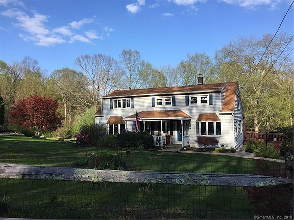 Perfect family Home! New England Style Cape beautifully situated on 5.81 acres has pretty gardens, fruit trees and stone walls. This home features large sun filled rooms, with 3 bedrooms, 2 full baths, new granite kitchen, living room, dining room, and family room. Two separate staircases leading up to 3 spacious bedrooms! The front of the home has a big farmer's porch with a swing and the back of the home has a covered porch and a 3 tier deck. The outdoors features two sheds an 8 x 12 shed and a 16 x 20 barn, has dog fenced in area and permit for small kennel. Detached one car garage. Leased solar panels on the roof, vented wood stove heating, also has an oil furnace, low utility costs! Upgrades in the past year includes, fresh paint, new tub, refinished living room and spare room, hardwood floor, newly updated granite kitchen, custom pantry and stainless steel appliances! Don't miss out on this awesome family home!