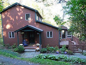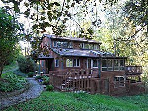 Beautifully renovated 1930s farmhouse situated on 1.6 park-like acres in the heart of Ellis Hollow. Home is full of light from skylights and the panoramic window views. Fully remodeled kit with vaulted ceiling opens into large DR. Sunny study with two walls of built-in bookshelves, cathedral ceilings w/ Mt. St Helens Hemlock opens to spacious hillside deck in the trees. 4-season sunroom off of kit connects front screened-in porch & rear deck. Solid oak floors and custom craftsman trim throughout. New bath w/tile floors. Basement w/shop space and exercise room, storage walks out to fully fenced yard. Rebuilt barn w/parking. A truly unique home!