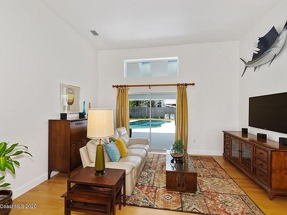 Exclusive Indialantic pool home has 3 bedrooms, 2 baths and an additional separate full pool bath. New roof in 2019. Remodeled bathrooms and inside and outside painted in 2020. New A/C. Open floor plan with almost every room having a view of the pool. Tile and wood floors. Gourmet kitchen with eat in area. Custom built home by Joyal Home in a wonderful neighborhood, schools and access to mayor roads. Boat parking allowed behind fence. Variable speed pool pump for energy efficiency. Central Vac system. Low HOA. A MUST SEE!!