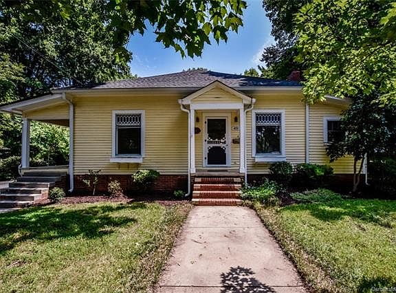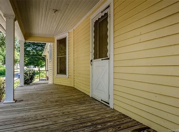 This charming 1916 Queen Anne/Craftsman home stands on a ¾ acre lot with mature trees and a large open side yard in one of Mooresville's oldest neighborhoods, just 2 blocks from historic downtown. It's a vibrant neighborhood, and close to dining, boutiques, and businesses. This sunny yellow wood frame house is loaded with period details, including ornate windows, solid oak six-panel doors, a 5'-wide solid oak pocket door, plaster walls, high ceilings, detailed fireplace surrounds, built-in storage cupboards and closets, and hardwood floors throughout most of the house. Updates include a whole-house carbon water filtration system, tankless water heater, new ceiling fans, new carpeting, old-fashioned authentic linoleum in the kitchen, new PVC pipes/plumbing, leafless gutter system and roof installed in 2011, HVAC in 2009, gas fp, and attic fan. All this plus a 20X13 wired outbuilding, screened porch, carport. Call to schedule a private showing today!