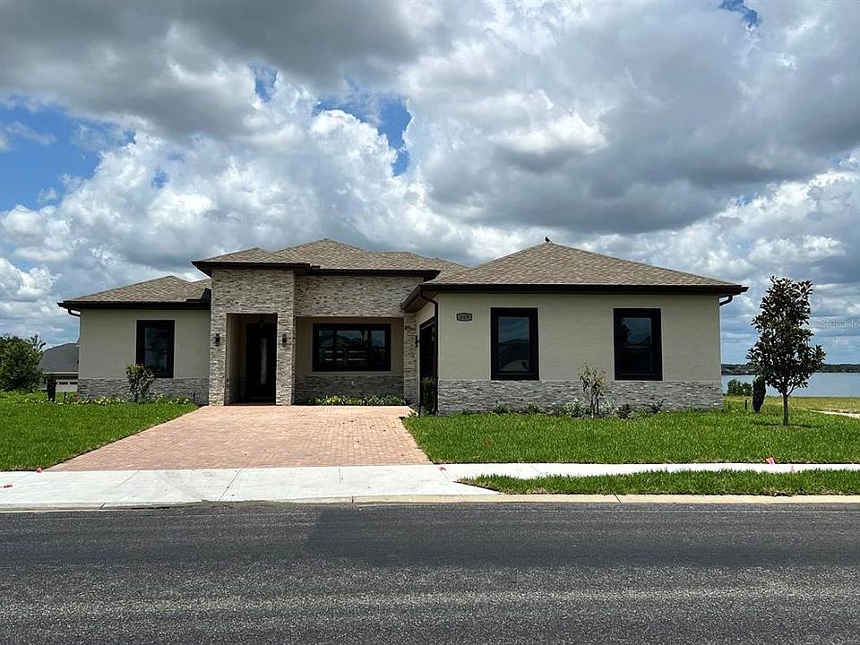 One or more photo(s) has been virtually staged. Imagine settling into a newly built, luxurious Contemporary 4-bedroom, ready to move home, situated in a distinguished gated enclave, Water Ridge. Ample natural illumination set a grand stage for a contemporary kitchen adorned with pristine Pure white Quartz Stone countertops and top-notch state-of-the-art stainless steel superior appliances. The thoughtful split floor plan encompasses a MAster suite with his and hers walk-in closets. 1 bedroom with individual bathroom, 2 bedrooms with a jack and jill suite and a flexible den, that could double as a fifth bedroom or home office. Fine ceramic tiling and crafted wood cabinets throughout underscore the home's refined elegance. The huge outdoor lanai commands stunning views of the lake Van, and the community's exclusive amenities, including three pools, four tennis courts, boat storage, two boat ramps/lakes access, a luxurious club house, sauna and a fitness center, epitomize a modern lifestyle. Some images have been virtually staged to illustrate the potential of these open, light-filled spaces. Envision living in a home that celebrates modern design and spacious living, set against the tranquil backdrop of this community in Auburndale. Don't miss this rare opportunity to own a piece of paradise. Bedroom Closet Type: Walk-in Closet (Primary Bedroom).