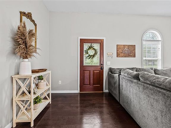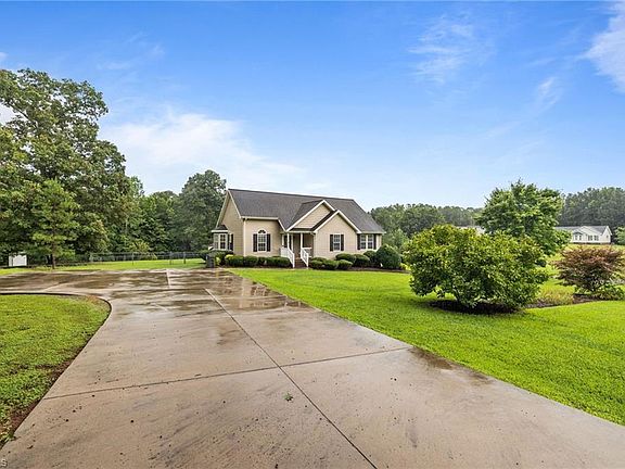 The cutest home in Woodridge Creeks in the county aka low taxes on almost 1 acre lot. More than 1400 sq ft, offering 3 bedrooms & 2 bathrooms. Tucked off the road with paved driveway & previously extended to make wider for more parking. Cute little covered porch. Living room is spacious w/ new ceiling fan. Engineered hardwoods flow throughout most of home. Kitchen layout is great with plenty of counter & cabinet space & appliances to remain. Dining room area offers amazing windows/natural light. Primary is generously sized w/ vaulted ceilings and large walk in closet. Ensuite has dual vanity, soaking tub & separate shower. 2 other bdrms recently painted & hall bath offers tub/shower combo. Outside you have the most expansive deck w/ dual steps overlooking backyard that is large, flat & fenced. Neighborhood is great for evening strolls, riding bikes etc. Prime Location.