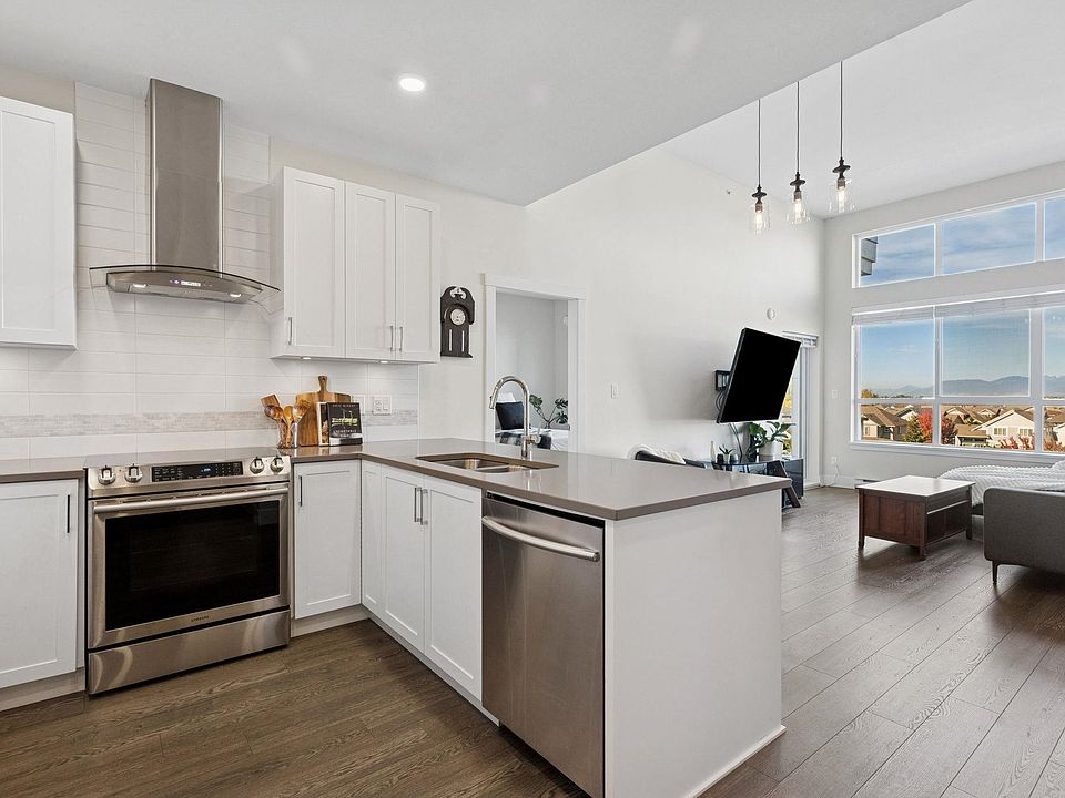 Welcome to Coast at Tsawwassen Shores, where modern design meets West Coast serenity. This top-floor 2-bed, 2-bath plus den home impresses with soaring 12’ ceilings, an open, airy layout, and expansive views from the ocean past downtown Vancouver to the North Shore mountains. Natural light floods every corner, creating a warm, inviting space perfect for relaxing or entertaining. Steps to Tsawwassen Mills, Big Splash Water Park, and scenic oceanfront trails, this home offers the ultimate blend of lifestyle and convenience. Two parking stalls and two storage lockers complete this rare opportunity.