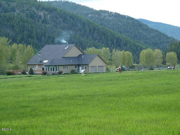 Exceptional private home in a beautiful private setting, borders Nat'l Forest on 2 sides, year round creeks, extensive water rights, pond, irrigated meadows, wrap around deck w/ hot tub. Beautiful kitchen w/maple cabinets. New Doug Fir flooring in living room w/river rock fireplace, tile, vaulted ceilings. Barn, fenced & cross-fenced. Also includes developable parcel w/ installed power & approved