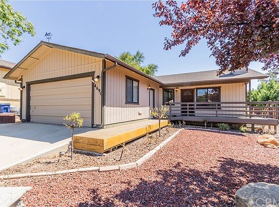 Classic Heritage Ranch Lake Living! This single level home is the epitome of life at Lake Nacimiento, featuring a wet bar off the living room and kitchen, large covered back deck for summer BBQ's and a finished 2 car garage to keep your toys! This 3 bedroom, 2 full bathroom home has been the heart of many get togethers over the years and is ready for its new owner to be able to enjoy the same. The living room is large with a wood burning stove for the cozy winters and is open to the kitchen & dining area. The master suite is a generous size with slider out to the back patio, a walk-in closet, and its own full bathroom. The home sits on a nice cul-de-sac and backs up to a view of the gently rolling hills of the greenbelt, and has been loved by the same owner since it was built. Come experience the lifestyle the gated community of Heritage Ranch has to offer!