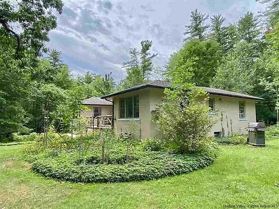 ARTFUL...PEACEFUL and LYRICAL home in the heart of the Hudson Valley. Lush and lovely.The very long driveway off 209 opens up to a very large estate-like yard w/ huge oak trees, a small grove of peach trees, a beautifully maintained vegetable garden, a chicken coop and a cottage that would be a perfect art studio, guest quarters, office, yoga studio or whatever one can imagine as a multi-use space off the home. It has a 1/2 bath as well as its own wood stove. The home is nestled on a slight hill w/ a lovely layout. A very open great room/dining room in the middle of the home w/ a wood stove insert to keep the entire home cozy and warm in the winter. Two bedrooms and full bath on one side and a third bedroom and eat -in kitchen on the other side w/ the kitchen opening up to the cottage garden outside and BBQ area. There is an out bldg w/ a pavillion off of it for outdoor al fresco dining. A full basement compete w/ a one car garage, music studio, wood shop ,wood stove, laundry room and lots of extra storage. This property is a true poetic delight. Extremely central to Stoneridge, High Falls, Rosendale, Kingston and New Paltz. A short distance to Mohonk Preserve trails, Tongore Park , Rosendale Rail trail and kayaking on the Rondout. A gorgeous Hudson Valley basecamp..for enjoying the best of what our treasured valley has to offer.