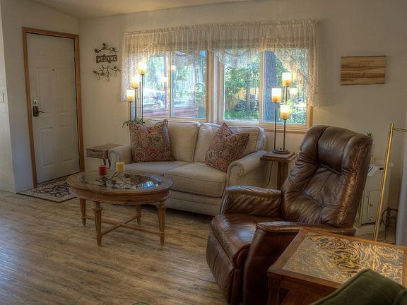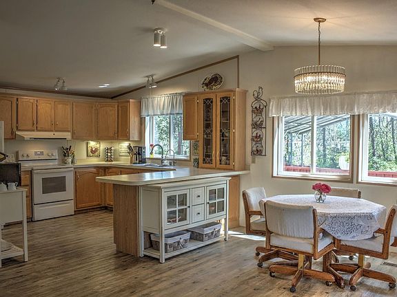 Pride of ownership comes shining through in this beautifully maintained home located in Ponderosa Park on a leased lot. Just minutes from downtown Sandpoint, City Beach on Lake Pend Oreille, & Schweitzer Mountain, an amazing outdoor lifestyle is at your fingertips. This home features 2 bedrooms, 2 bathrooms (Master ensuite bathroom), 1242 Sq ft., vinyl plank flooring throughout, & a heat pump for efficient heating & cooling. A 1 car insulated garage with new lighting & a garage door opener, & a 20 X 20 X 8, 2 car covered carport fulfill all your storage needs. Recent updates include: a Bosch dishwasher, Atla water filtration system (under-sink), 50-gallon water heater, sink faucets in master bath & kitchen, shower head & hand-held wand in master bath, LED chandelier in dining area, & marine grade 20 mil clear vinyl windows enclosing the porch. There are convenient keypad door locks on all exterior doors. The park-like grounds are lovely & feature a manicured lawn and mature landscaping with large, beautiful trees, Virginia Creeper, a Japanese Maple, & multiple flower plantings, all located at the end of the quiet country road.