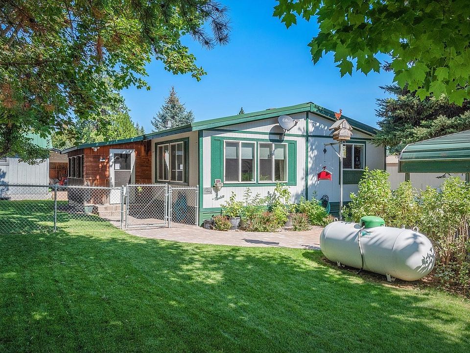Excellent Condition! 1998 Marlette Manufactured home. Located in Ponderosa Park on a leased lot. 3 bdrm, 2 bth 1296 sqft. Completely updated 2 years ago. New appliances, new flooring, new sinks, new faucets, new blinds, newer lighting fixtures. New gas freestanding stove, new FFA gas furnace, new central air conditioner. New exterior, interior paint. Carport is included. Side yards are separate and gated. Lot rent is $320. per month and includes water/sewer. 3 new exterior frost-free hydrants were recently installed. All appliances, and bar stools all included.. Buyer must be interviewed and accepted by park management.