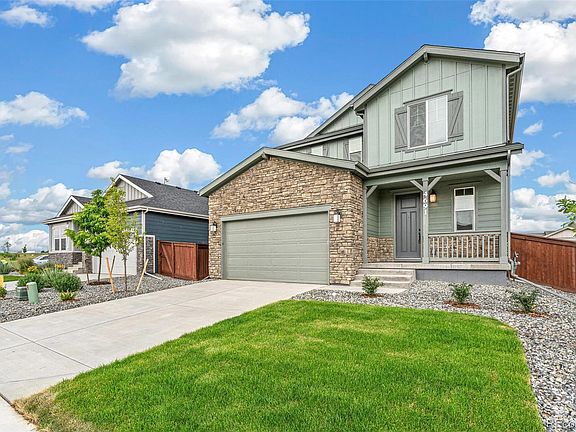 This stunning two-story home features a spacious and inviting open floor plan, perfect for both everyday living and entertaining. As you enter, you'll be greeted by an expansive family room that adds warmth and charm to the space. Large windows flood the area with natural light, creating a bright and airy atmosphere. The main floor seamlessly flows into an open kitchen, equipped with modern appliances, ample quartz counter space, and a central island that doubles as a casual dining area. Upstairs, you'll find three generously sized bedrooms, each designed with comfort and privacy in mind. The primary suite boasts a luxurious en-suite bathroom, and double vanity, along with a spacious walk-in closet. The two additional bedrooms share a well-appointed bathroom and offer plenty of closet space. Adding to the home's appeal is a versatile loft space on the second floor, ideal for a home office, playroom, or additional living area. This flexible space allows for endless possibilities. Throughout the home, attention to detail and high-quality finishes create an elegant yet comfortable living environment. This home combines the best of modern design with the warmth and functionality desired in a family residence. Situated in the desirable Revere community, residents will enjoy the benefits of a well-planned neighborhood with green spaces, community amenities, and a welcoming atmosphere. Johnstown, Colorado, provides a picturesque backdrop for this residence, combining small-town charm with modern living.The Listing Team represents seller/builder as a Transaction Broker